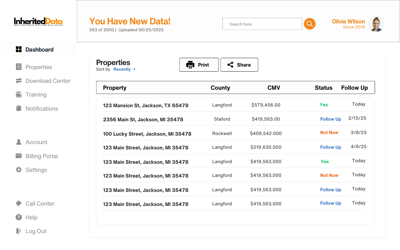 Everything in one place. Deceased, Property, and Beneficiary information at your fingertips. Everything you need to skyrocket your success.